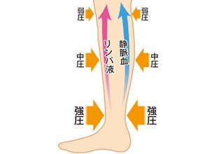 足首からひざ周りにかけての段階的な着圧効果で、血行を促進し、むくみを軽減します。