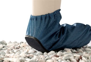 サッとはくだけ、足首から膝上までをスッポリカバーしてズボンを汚しません。