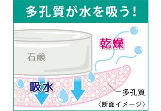 溶けた石鹸の不快なヌルヌル感を解消します。乾燥状態を維持するので衛生的です。
