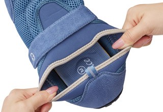 履き口はストレッチ素材のため着脱しやすく、面ファスナーで甲を固定できるのでよりフィットします。