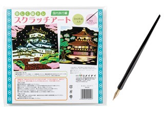 25×25cmサイズのスクラッチシート6作品入り。専用スクラッチペン付きです。