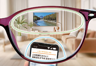 紫外線の強さによって色が変化するサングラス機能レンズ。